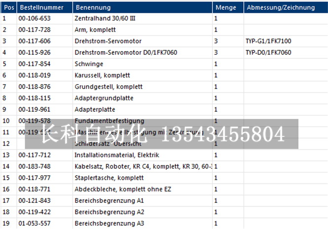 KUKA kr 30-3機(jī)器人配件訂貨號(hào)