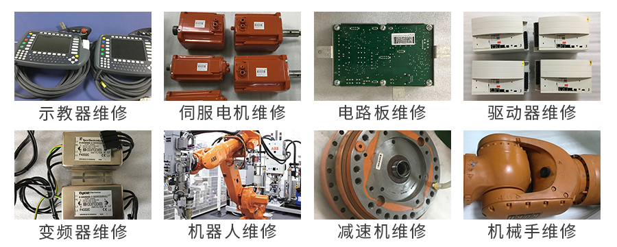 示教器、伺服電機(jī)、減速機(jī)、驅(qū)動(dòng)器、變頻器、電路板、機(jī)械手、控制柜、電源、機(jī)器人本體......