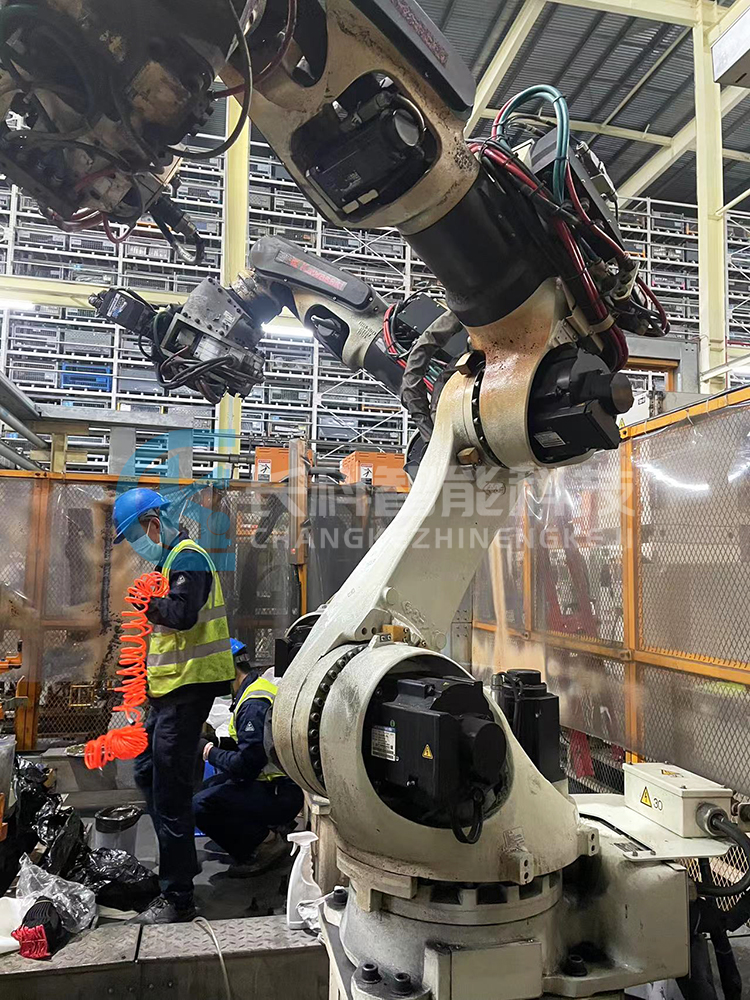 This time, multiple Kawasaki welding robots with models 3BA006L-AC01 were maintained on the rear floor and middle channel production lines of the welding machine department in the automotive grinding and stamping plant BX100N B、BX165L B。